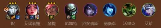 阵容搭配:烬,刀妹,瑟提,螃蟹,厄斐琉斯,丽桑卓,沃里克,艾希