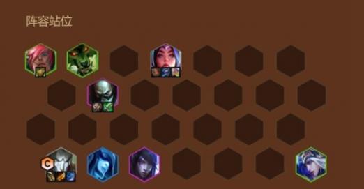艾希单独站位右下角(安全环境输出),其余主流角色放置左侧。