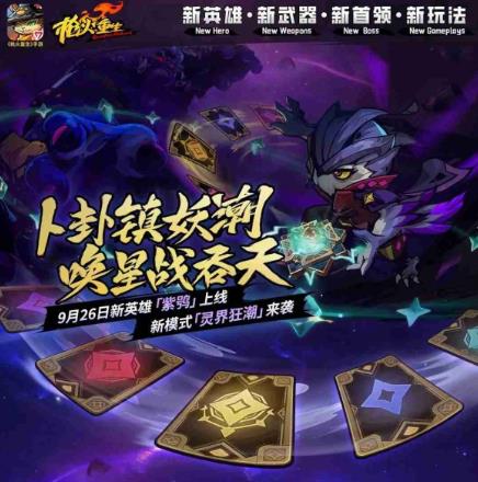 国风冒险闯关FPS——《枪火重生》手游,将于2023年9月26日(周二)进行秋季更新,此次更新包括最新付费英雄「紫鸮」;免费武器「星环」「藏拙」;新模式「灵界狂潮」;新首领「吞天」。