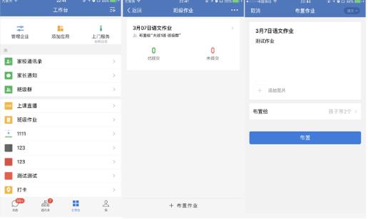 3、手机端/电脑端—工作台—班级作业—布置作业。